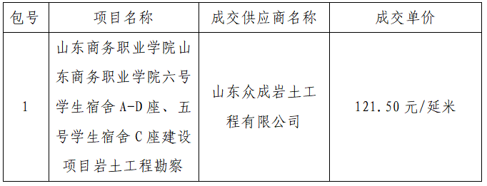 山东商务职业学院六号学生宿舍A-D座、五号学生宿舍C座建设项目岩土工程勘察成交结果公告