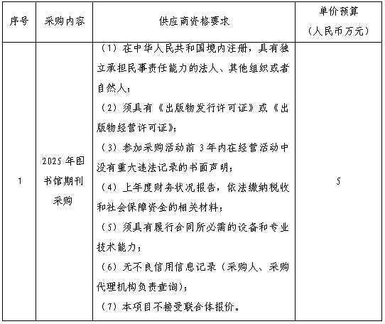 一、采购项目名称:2025年图书馆期刊采购