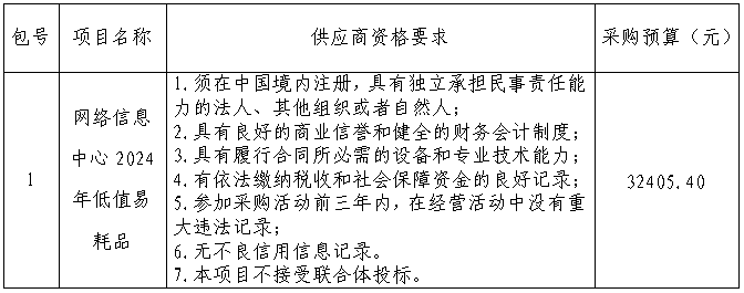 一、采购项目名称:网络信息中心2024年低值易耗品
