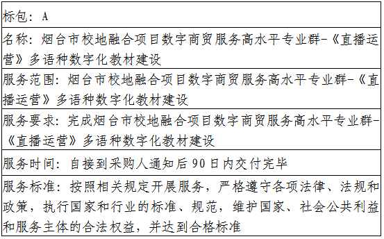 山东商务职业学院烟台市校地融合项目数字商贸服务高水平专业群—《直播运营》多语种数字化教材建设中标(成交)公告