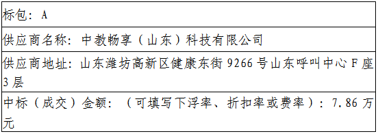 标包A:中教畅享(山东)科技有限公司(96.5、99.0、99.0)、山东学文信息科技有限公司(83.89、86.39、87.39)、济南辰科信息科技有限公司(83.9、85.9、87.9)