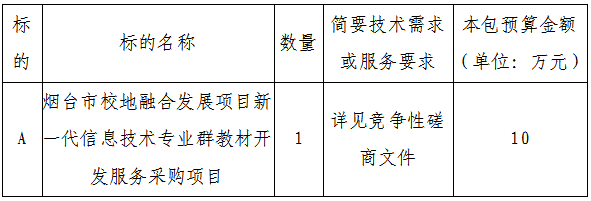 项目名称:烟台市校地融合发展项目新一代信息技术专业群教材开发服务采购项目