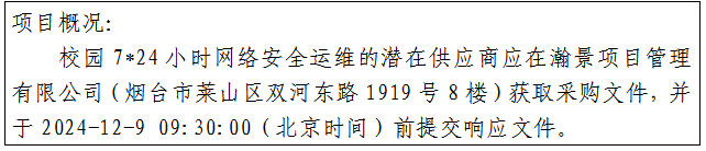 2.开启地点:瀚景项目管理有限公司(烟台市莱山区双河东路1919号8楼开标室)