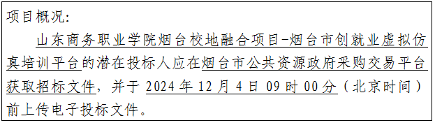 山东商务职业学院烟台校地融合项目—烟台市创就业虚拟仿真培训平台公开招标公告