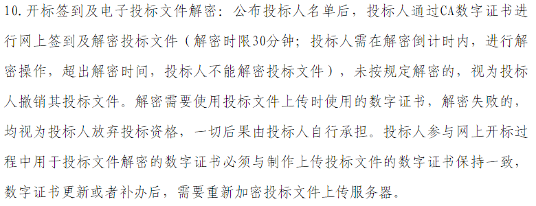 2.本项目实施“不见面开标”,投标人应确保自己的电脑环境、CA锁、网络等状况良好,以免影响其参与交易活动。