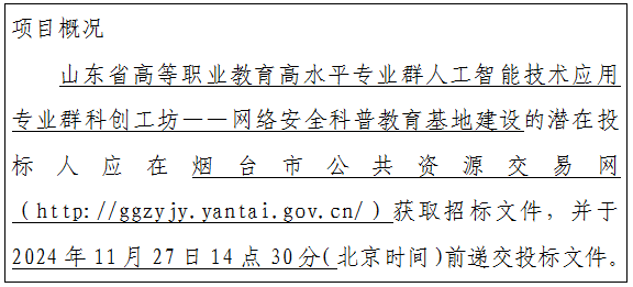 山东商务职业学院山东省高等职业教育高水平专业群人工智能技术应用专业群科创工坊—网络安全科普教育基地建设招标公告