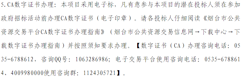 12.请各投标人获取招标文件后及时关注烟台市公共资源政府采购交易平台“答疑文件”页面。