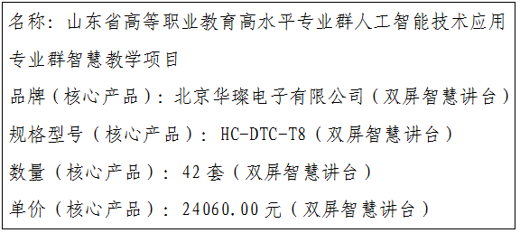 山东商务职业学院山东省高等职业教育高水平专业群人工智能技术应用专业群智慧教学项目中标公告