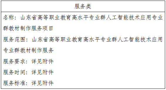 二、项目名称:山东省高等职业教育高水平专业群人工智能技术应用专业群教材制作服务项目