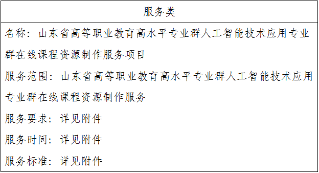 二、项目名称:山东省高等职业教育高水平专业群人工智能技术应用专业群在线课程资源制作服务项目