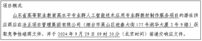 2.项目名称:山东省高等职业教育高水平专业群人工智能技术应用专业群教材制作服务项目