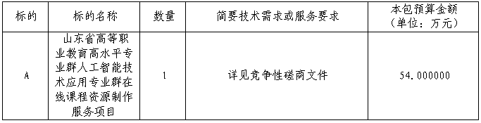 山东省高等职业教育高水平专业群人工智能技术应用专业群在线课程资源制作服务项目竞争性磋商公告