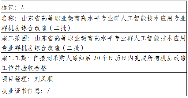 山东商务职业学院山东省高等职业教育高水平专业群人工智能技术应用专业群机房综合改造(二批)中标(成交)公告