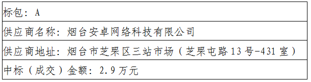 标包A:烟台安卓网络科技有限公司(93.0、94.0、97.0)、烟台三信电子信息科技有限公司(82.19、88.19、94.19)、烟台禹晟智能技术有限公司(89.49、90.99、95.49)