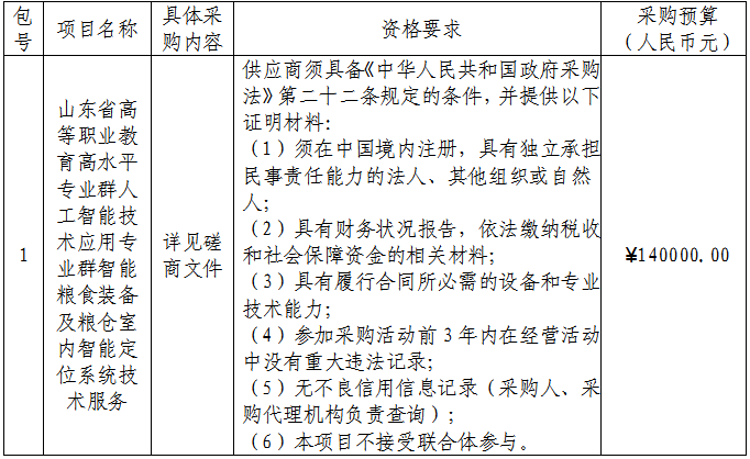 山东商务职业学院山东省高等职业教育高水平专业群人工智能技术应用专业群智能粮食装备及粮仓室内智能定位系统技术服务竞争性磋商公告