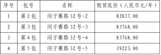 本次采购标包情况及租赁底价: