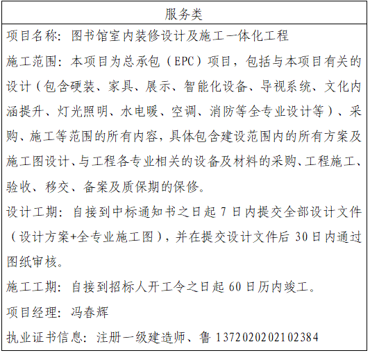 二、项目名称:图书馆室内装修设计及施工一体化工程