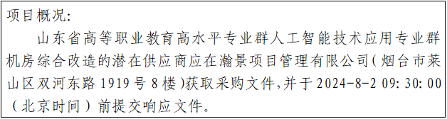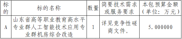 项目名称:山东省高等职业教育高水平专业群人工智能技术应用专业群机房综合改造