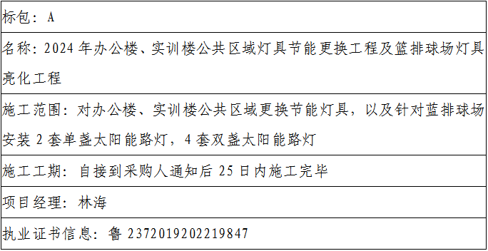 二、项目名称:2024年办公楼、实训楼公共区域灯具节能更换工程及篮排球场灯具亮化工程