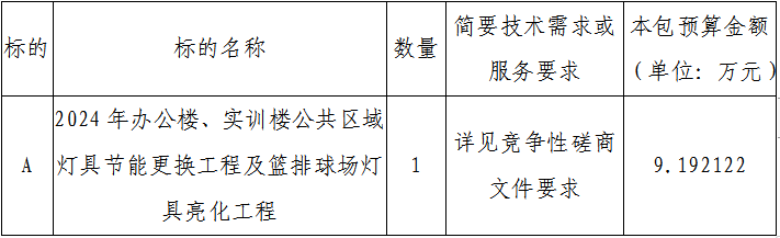 项目名称:2024年办公楼、实训楼公共区域灯具节能更换工程及篮排球场灯具亮化工程
