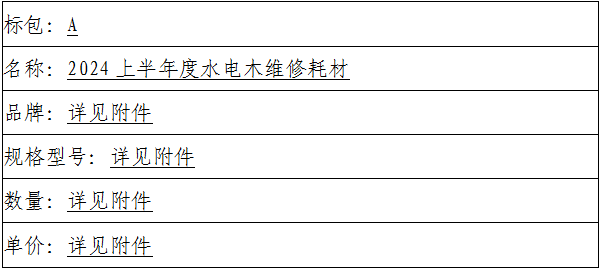 二、项目名称:2024年上半年水电木维修耗材