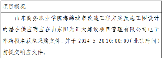山东商务职业学院海绵城市改造工程方案及施工图设计竞争性磋商公告
