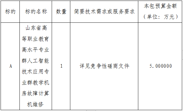 2.项目名称:山东省高等职业教育高水平专业群人工智能技术应用专业群教学机房故障计算机维修