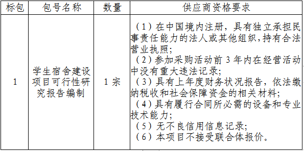二、采购项目名称:学生宿舍建设项目可行性研究报告编制