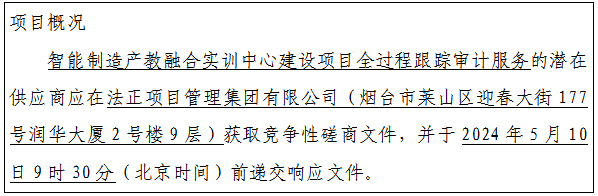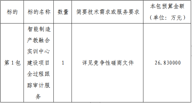 2.项目名称:智能制造产教融合实训中心建设项目全过程跟踪审计服务