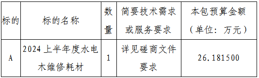 项目名称:2024年上半年水电木维修耗材