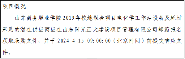 山东商务职业学院2019年校地融合项目电化学工作站设备及耗材采购竞争性磋商公告(三次)
