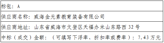 标包A:威海金元素教育装备有限公司(96.0、100.0、100.0)、山东坤森教学设备有限公司(94.18、96.18、97.18)、山东耀翔信息科技有限公司(90.38、92.38、93.38)、烟台鑫伟达网络科技开发有限公司(93.22、94.22、95.22)