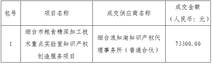 山东商务职业学院烟台市粮食精深加工技术重点实验室知识产权创造服务项目成交结果公告
