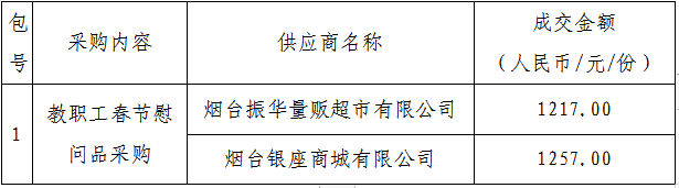 山东商务职业学院教职工春节慰问品采购成交公告