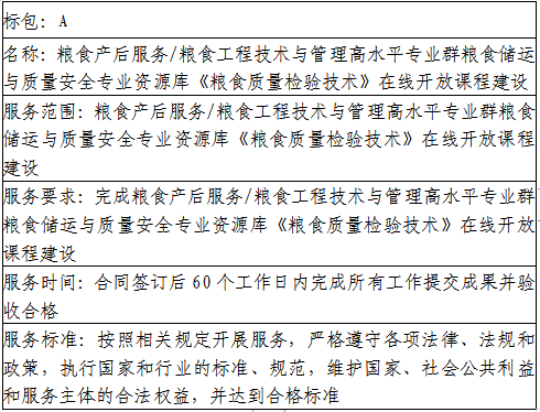 山东商务职业学院粮食产后服务/粮食工程技术与管理高水平专业群粮食储运与质量安全专业资源库《粮食质量检验技术》在线开放课程建设中标(成交)公告