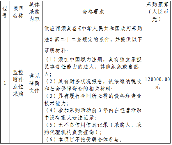 一、采购项目名称:监控增补点位采购