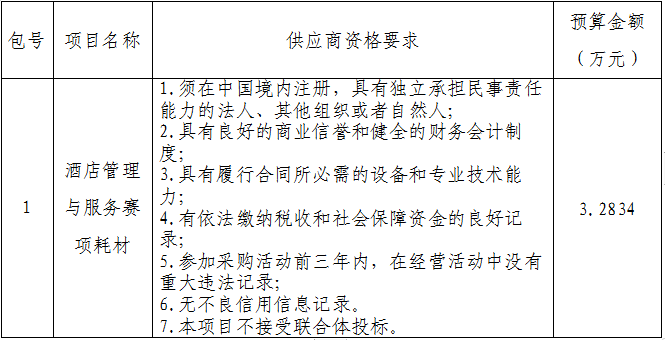 山东商务职业学院酒店管理与服务赛项耗材竞争性谈判公告