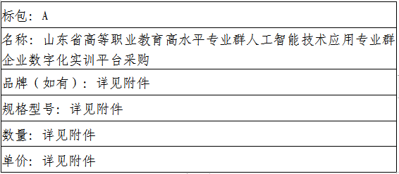 二、项目名称:山东省高等职业教育高水平专业群人工智能技术应用专业群企业数字化实训平台采购