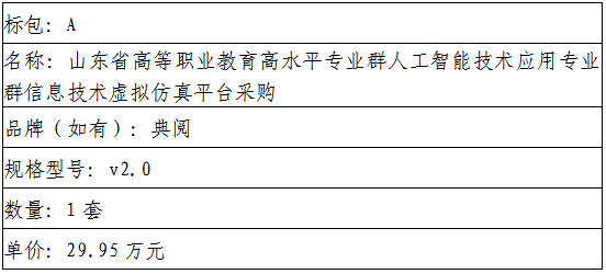 二、项目名称:山东省高等职业教育高水平专业群人工智能技术应用专业群信息技术虚拟仿真平台采购