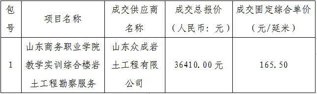 一、项目名称:山东商务职业学院教学实训综合楼岩土工程勘察服务