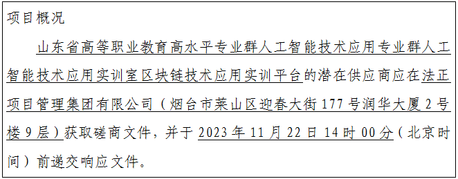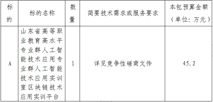 山东商务职业学院山东省高等职业教育高水平专业群人工智能技术应用专业群人工智能技术应用实训室区块链技术应用实训平台竞争性磋商公告
