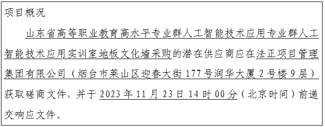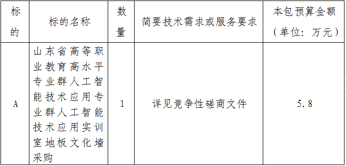 2.项目名称:山东省高等职业教育高水平专业群人工智能技术应用专业群人工智能技术应用实训室地板文化墙采购