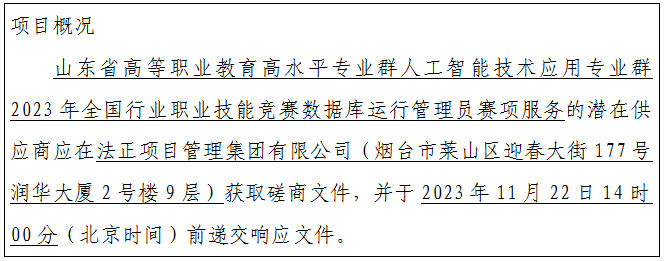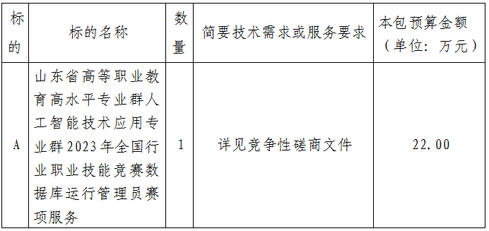 2.项目名称:山东省高等职业教育高水平专业群人工智能技术应用专业群2023年全国行业职业技能竞赛数据库运行管理员赛项服务
